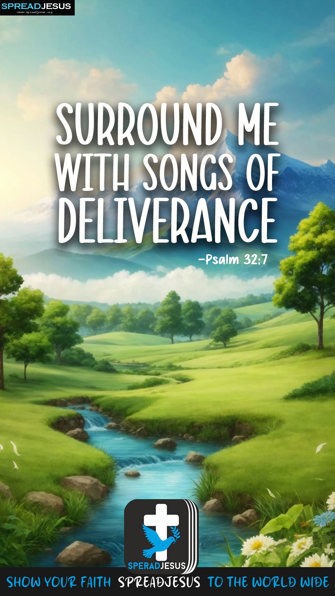Psalm 32:7 Daily bible quote wallpaper for whatsapp status Download “Surround me with songs of deliverance ” from Psalm 32:7 as a Bible quote wallpaper and daily Christian status for strength and faith. Daily Bible quote status | Christian WhatsApp status | Download HD Wallpapers Free