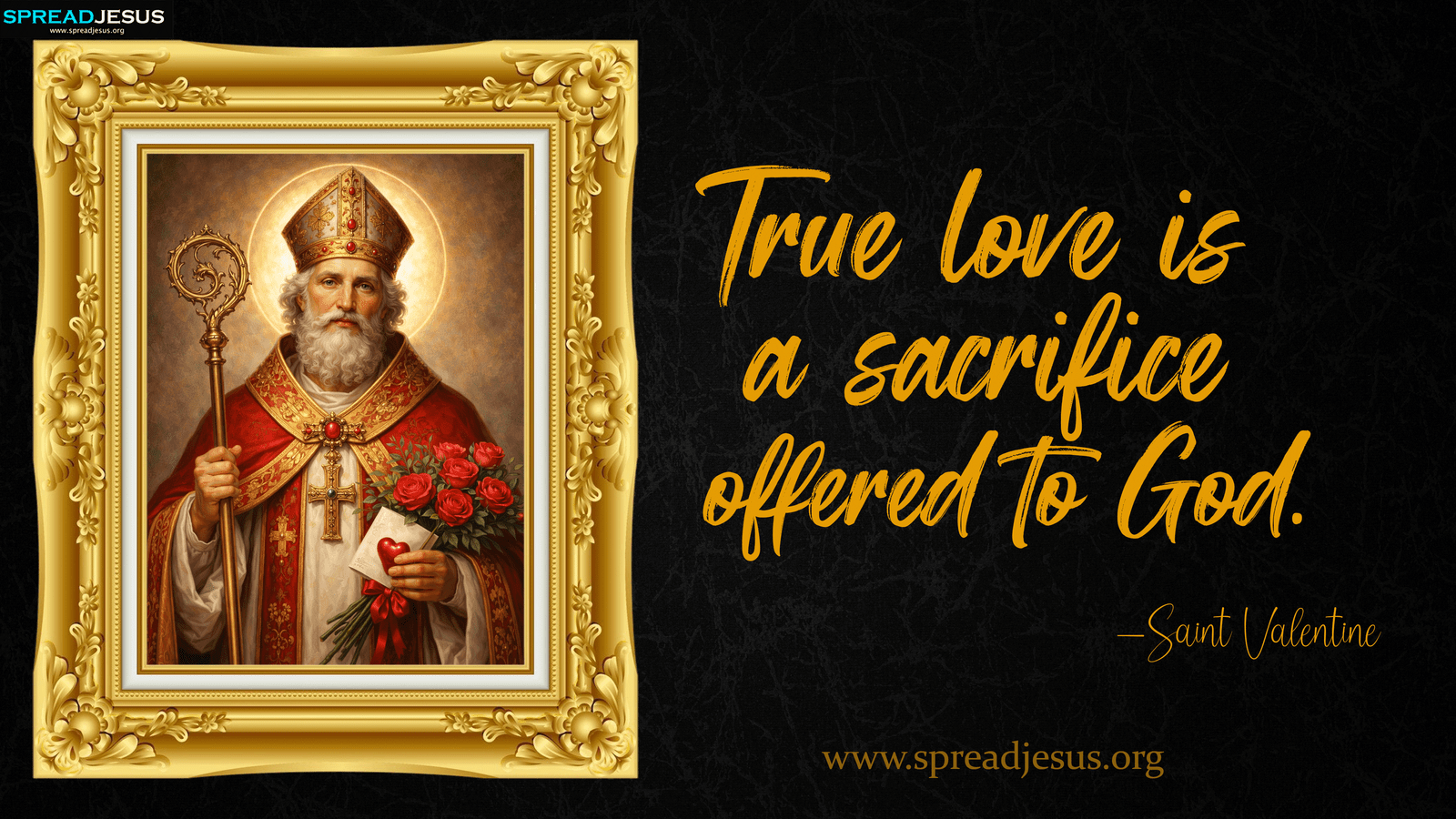 Saint Valentine quote wallpaper about true love and sacrifice offered to God. High-quality 4K Christian wallpaper for believers. True Love Sacrifice Quote – Saint Valentine 4K Christian Wallpaper