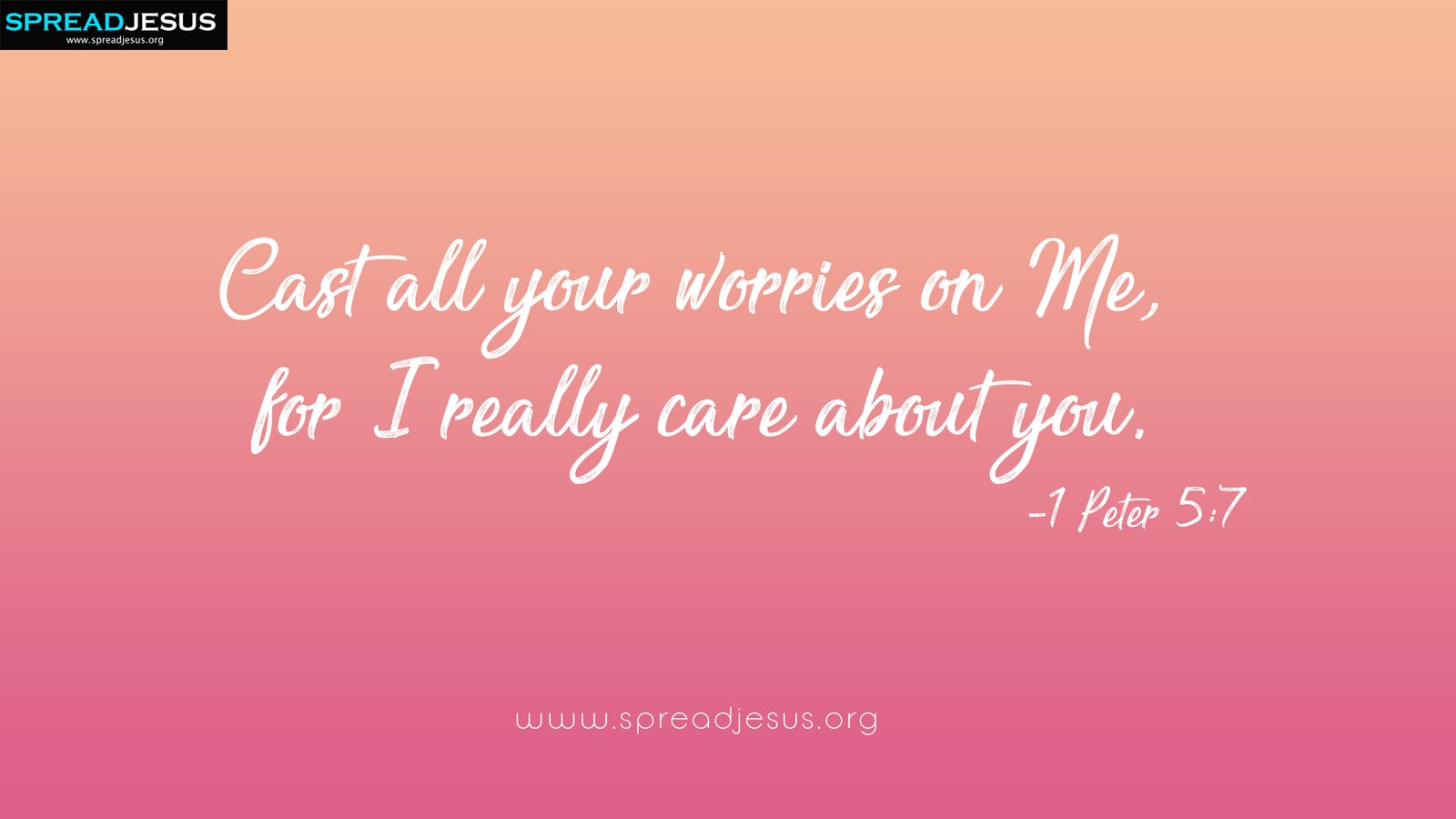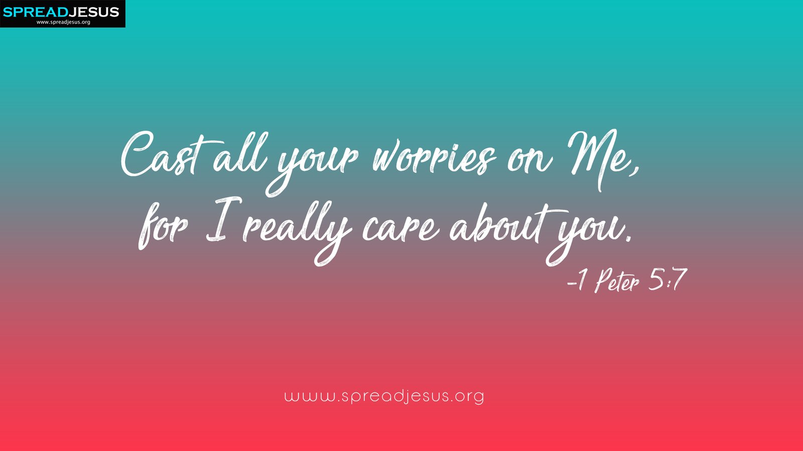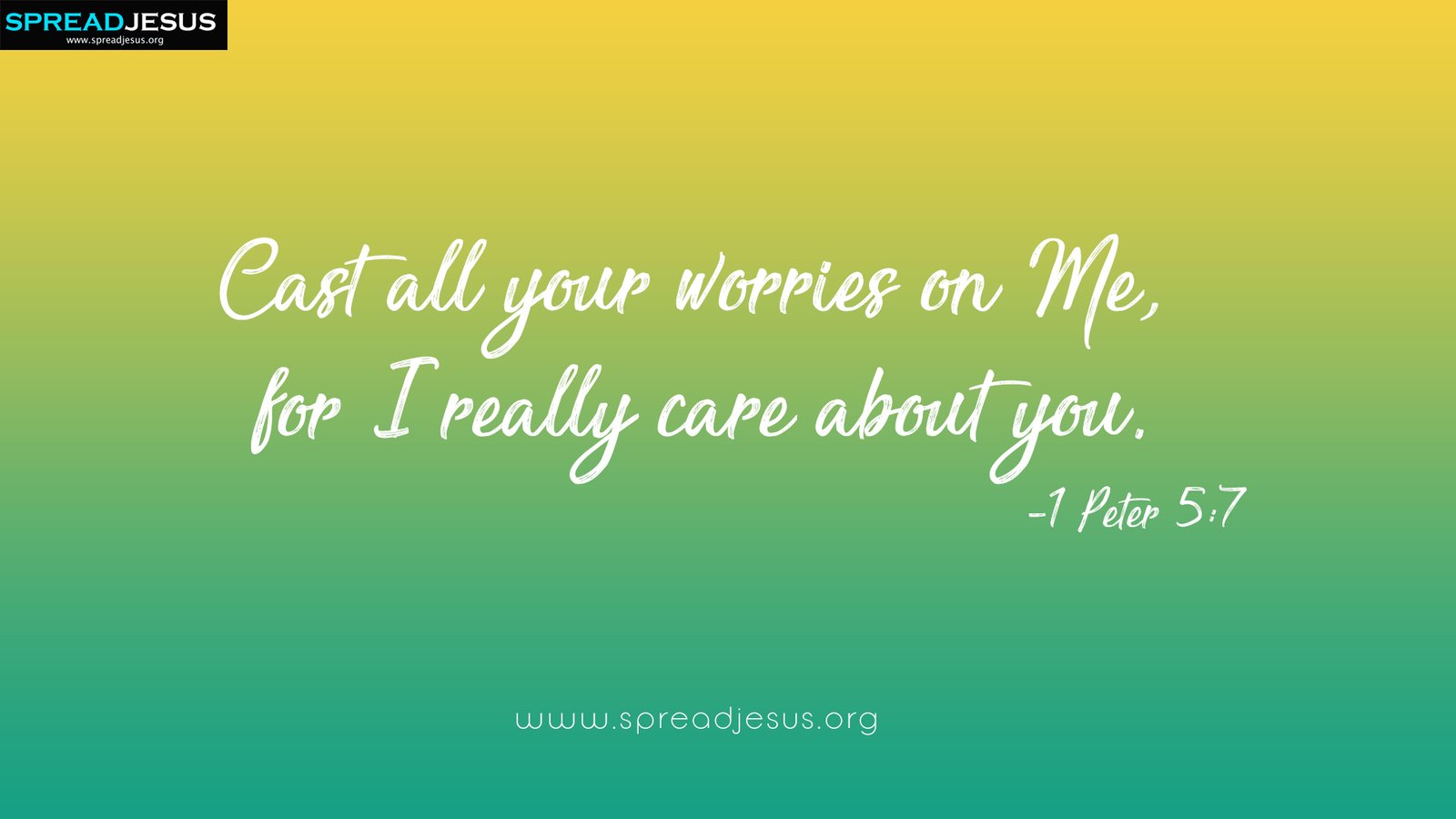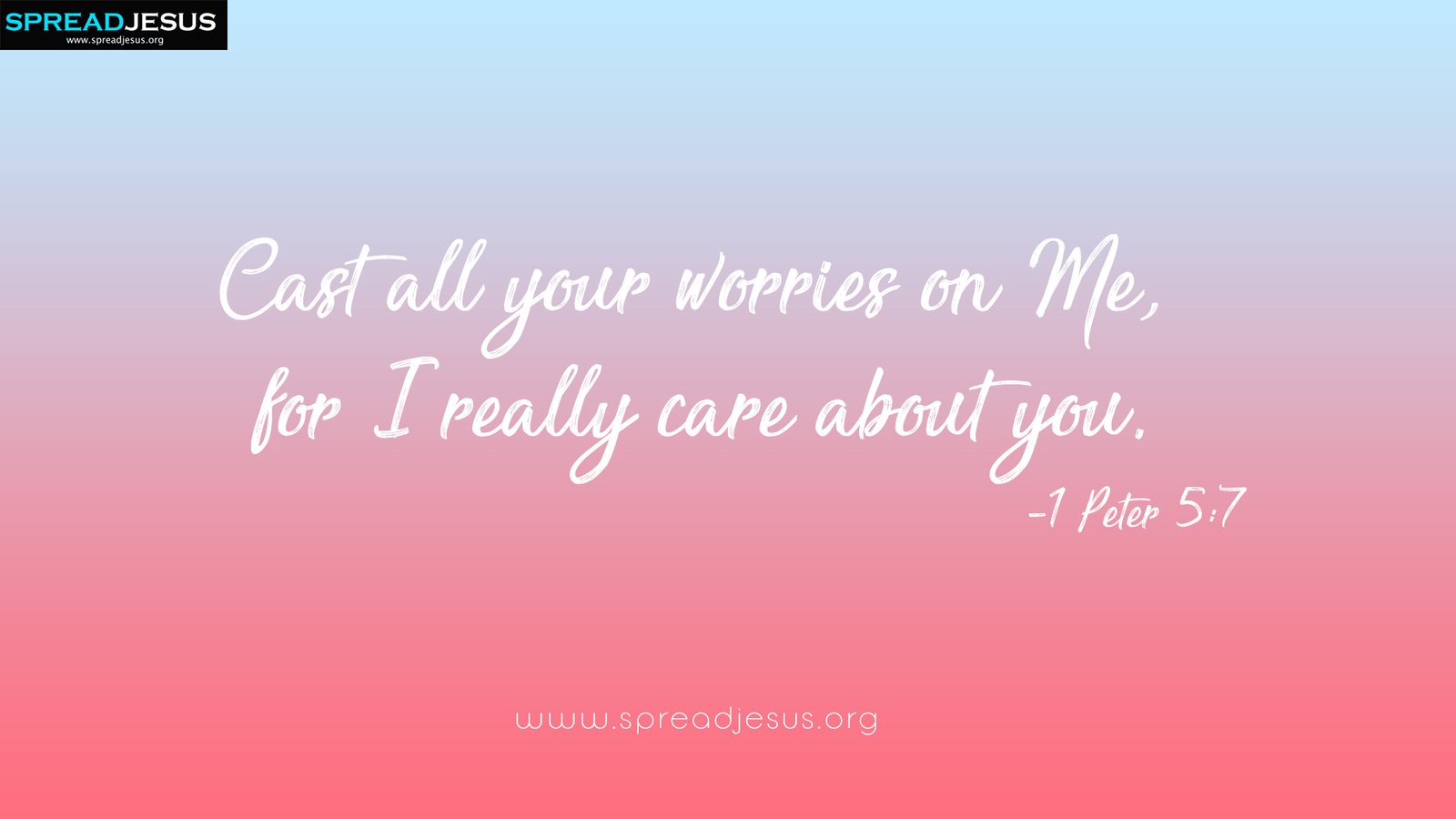 Cast all your worries on Me, for I really care about you.