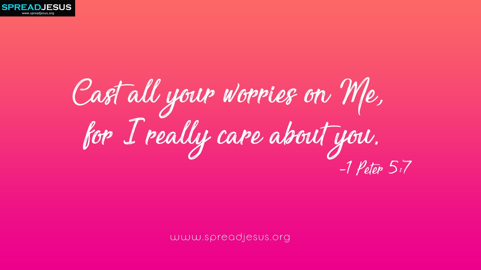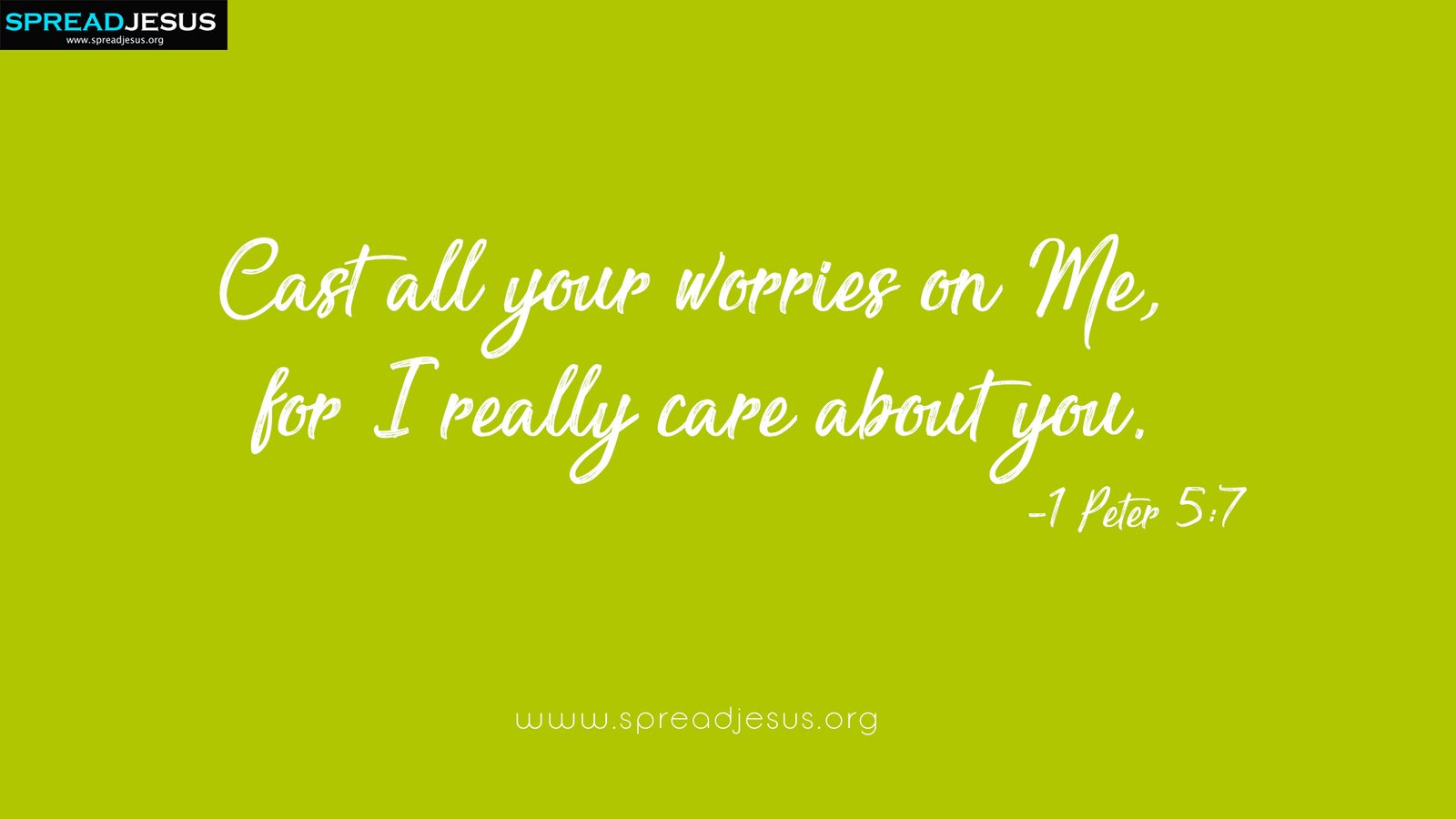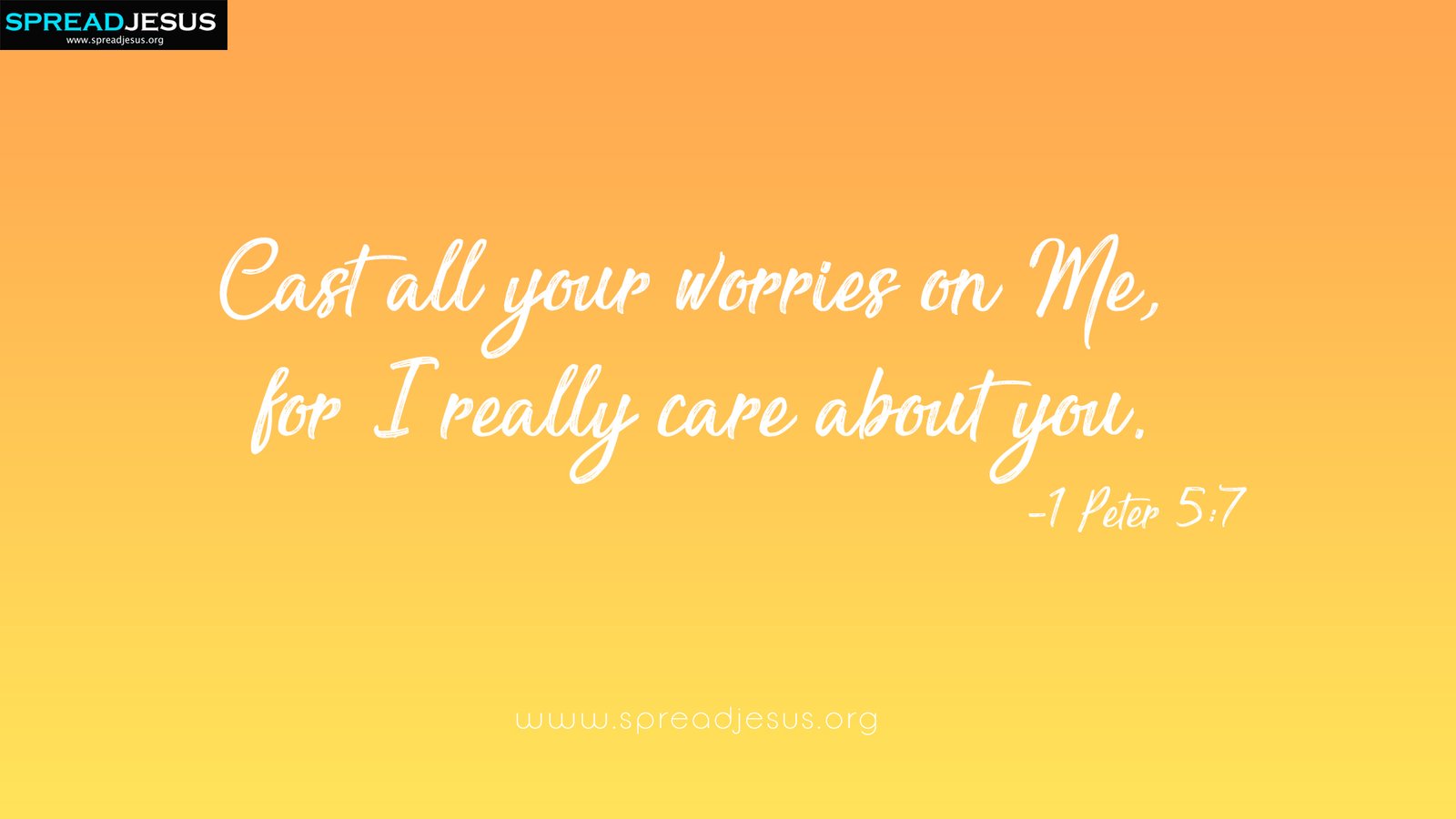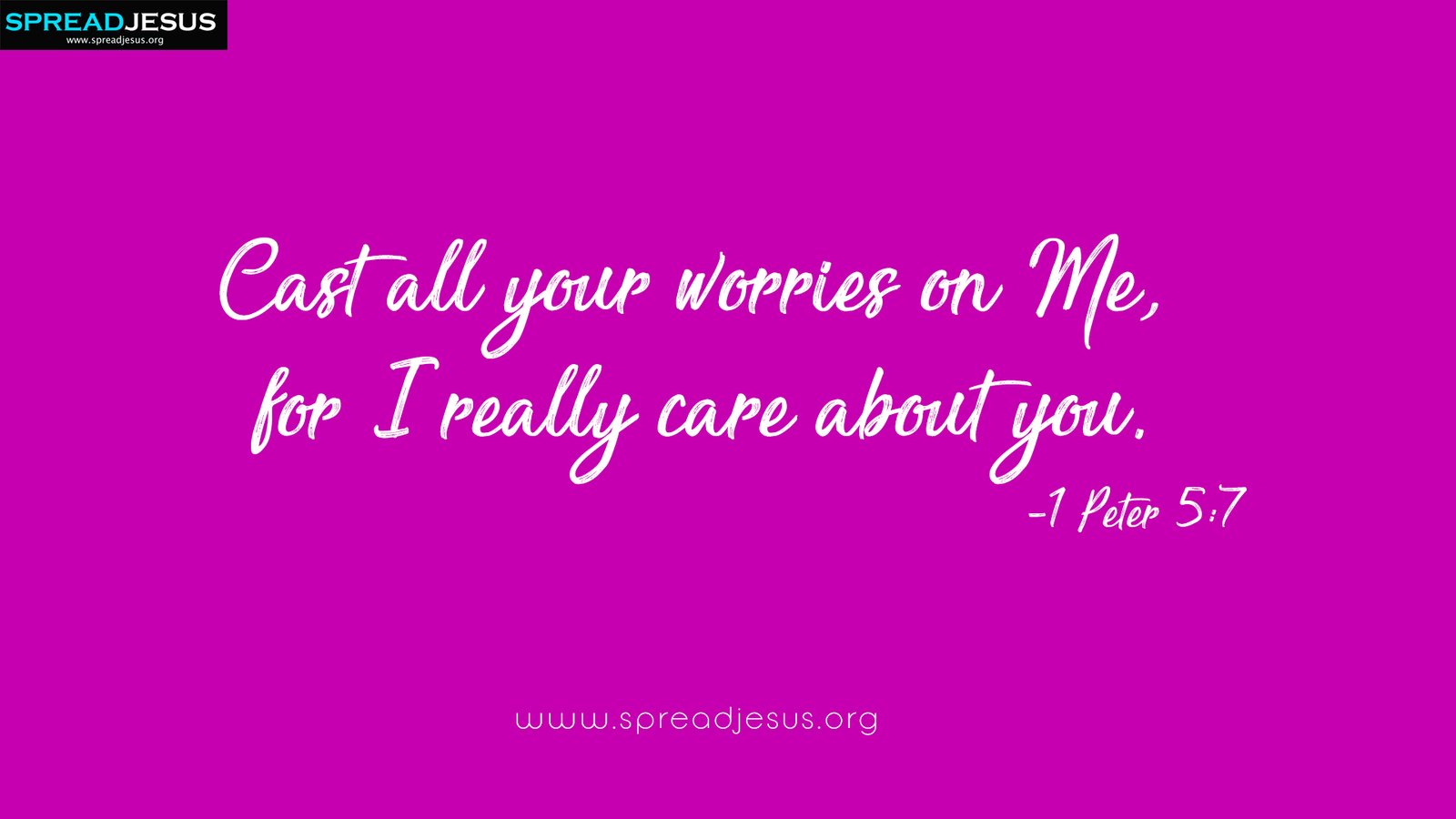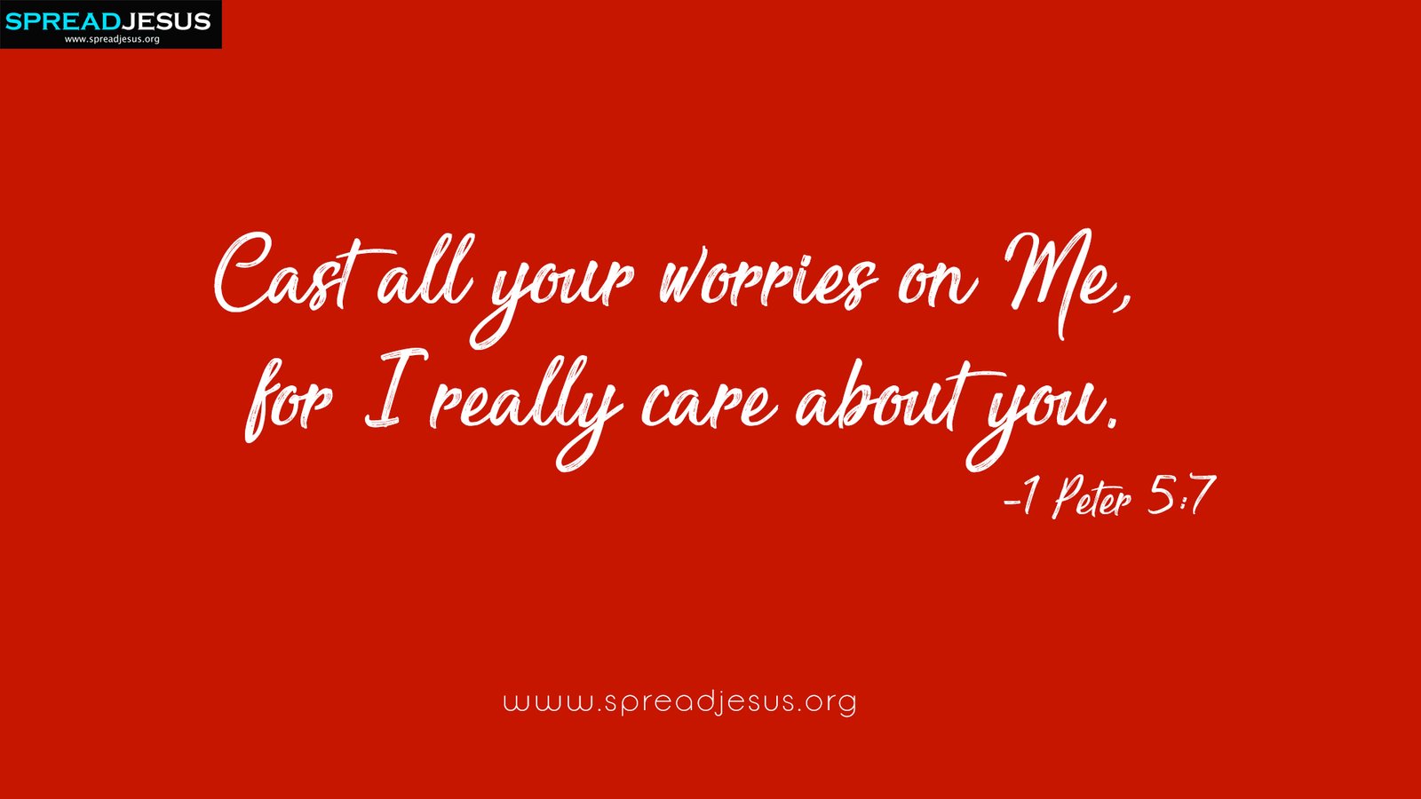 Cast all your worries on Me, for I really care about you.