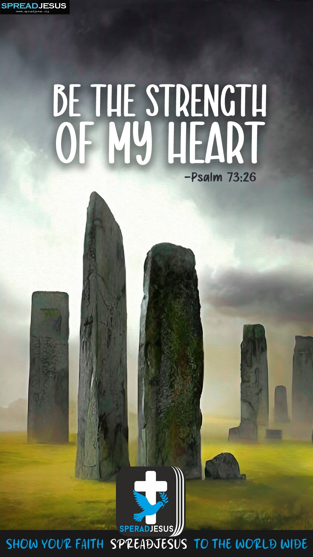 Psalm 73:26 Daily bible quote wallpaper for whatsapp Download “Be the strength of my heart” from Psalm 73:26 as a Bible quote wallpaper and daily Christian status for strength and faith.