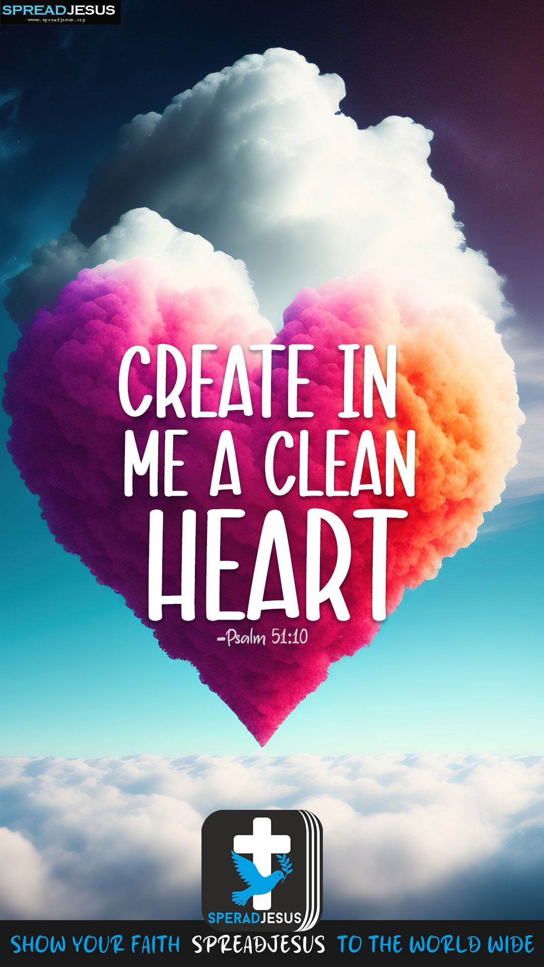 Psalm 51:10 Daily bible quote wallpaper for whatsapp Download “Create in me a clean heart” from Psalm 51:10 as a Bible quote wallpaper and daily Christian status for strength and faith.