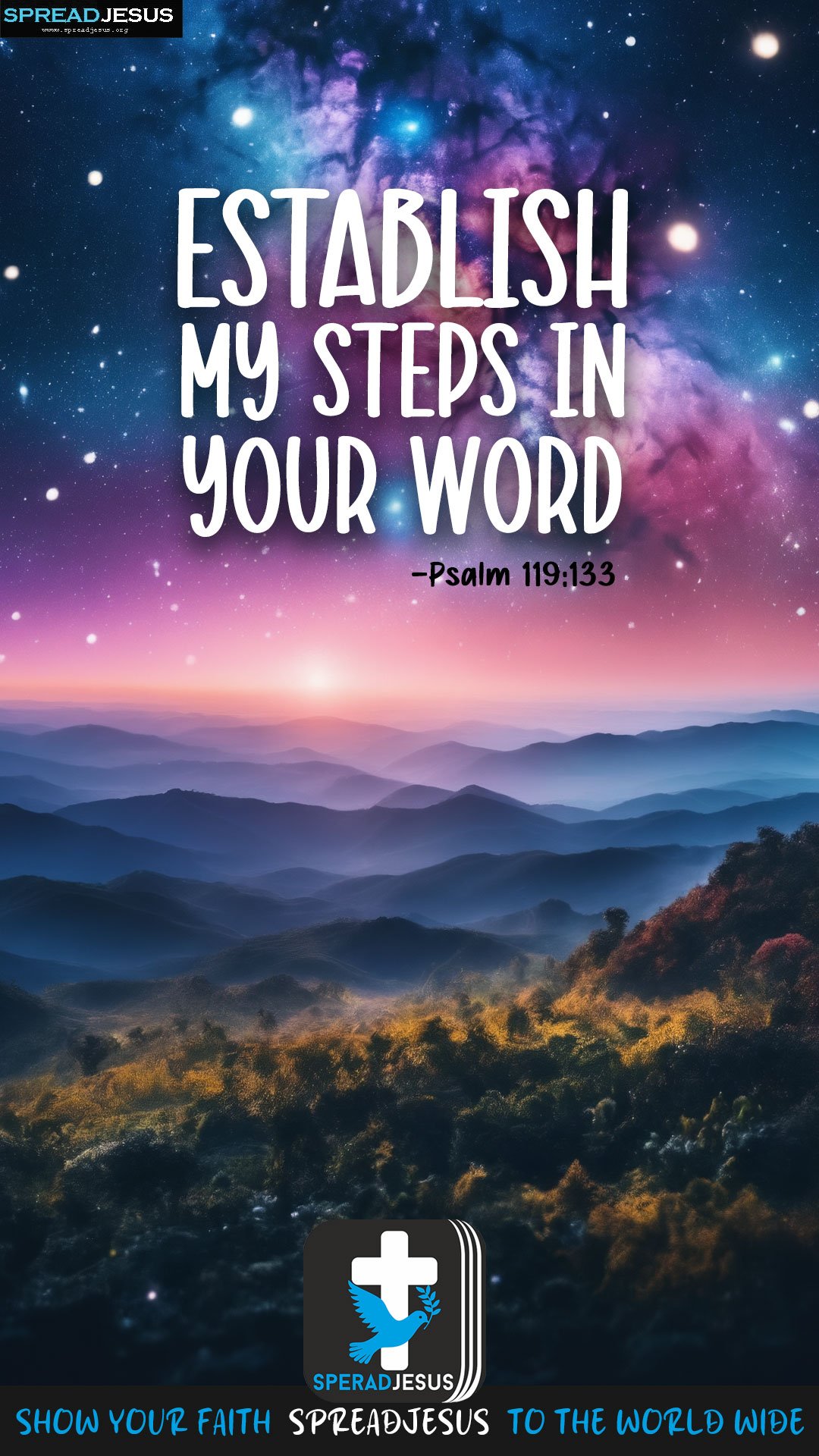 Psalm 119:133 Daily bible quote wallpaper for whatsapp Download “Establish my steps in Your Word” from Psalm 119:133 as a Bible quote wallpaper and daily Christian status for strength and faith.