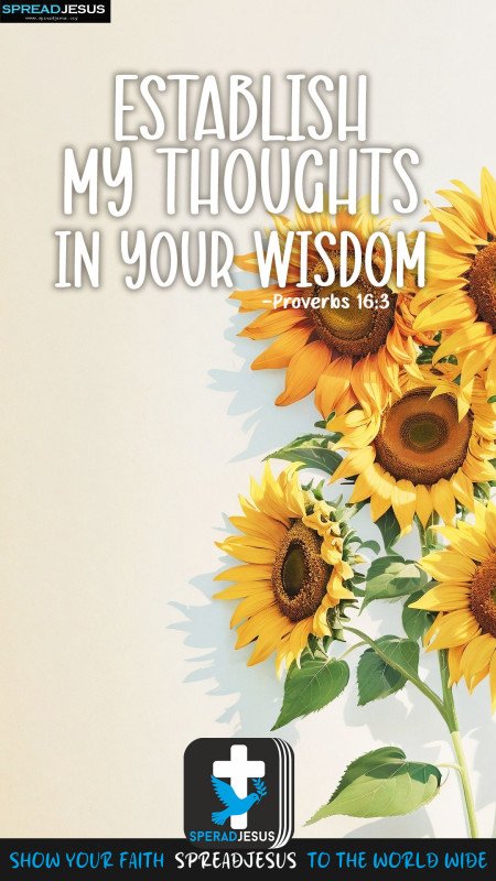 Proverbs 16:3 Daily bible quote wallpaper for whatsapp Download “Establish my thoughts in Your wisdom” from Proverbs 16:3 as a Bible quote wallpaper and daily Christian status for strength and faith.