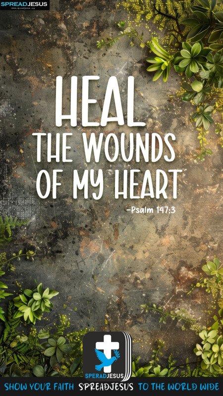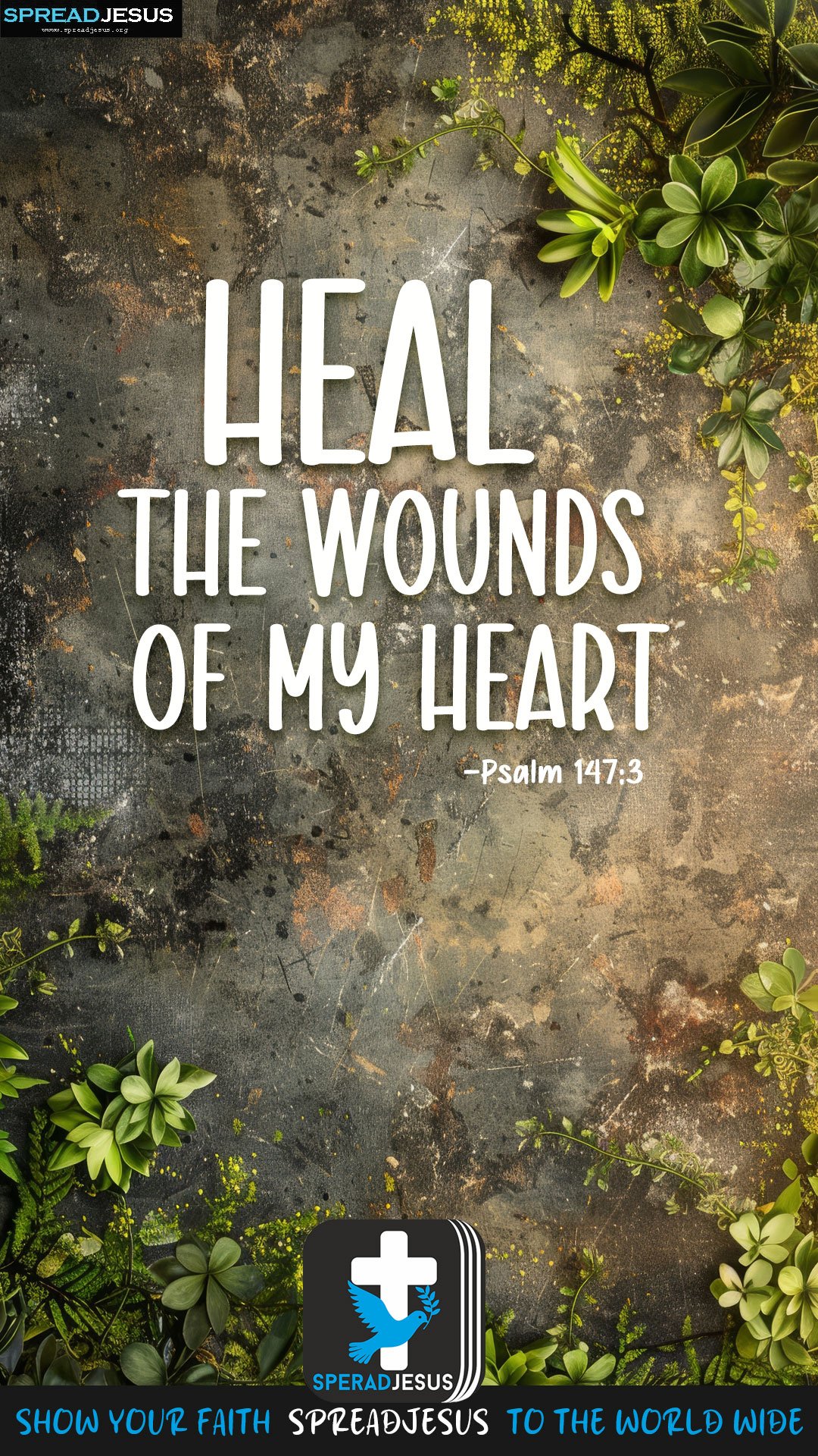 Psalm 147:3 Daily bible quote wallpaper for whatsapp status Download “Heal the wounds of my heart” from Psalm 147:3 as a Bible quote wallpaper and daily Christian status for strength and faith. Daily Bible quote status | Christian WhatsApp status | Download HD Wallpapers Free
