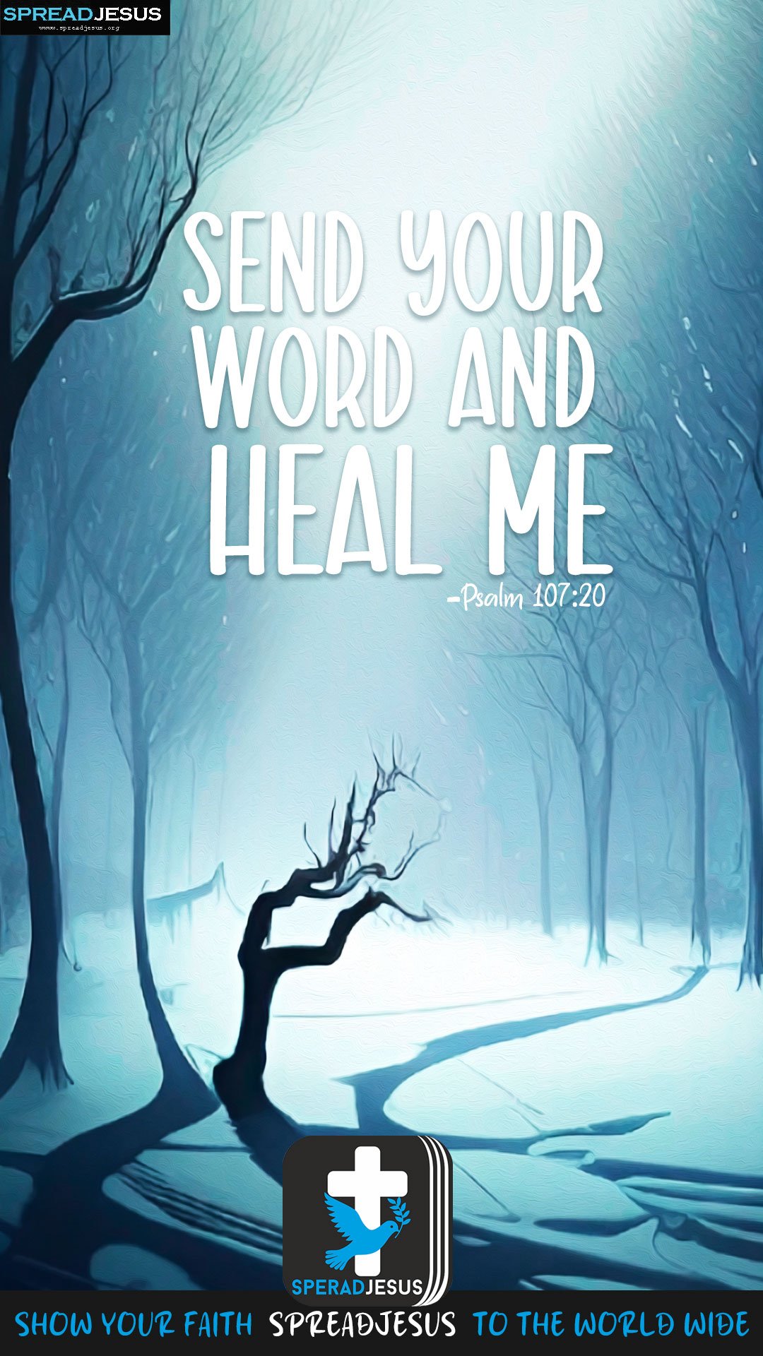 Psalm 107:20 Daily bible quote wallpaper for whatsapp status Download “Send Your Word and heal me” from Psalm 107:20 as a Bible quote wallpaper and daily Christian status for strength and faith. Daily Bible quote status | Christian WhatsApp status | Download HD Wallpapers Free