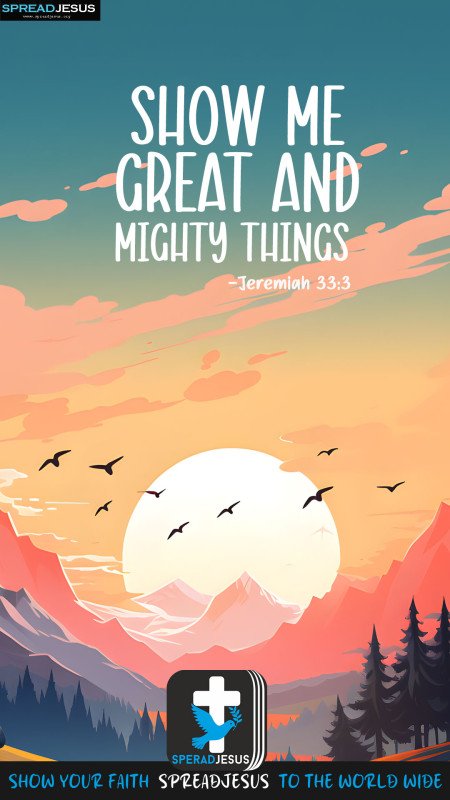 Jeremiah 33:3 Daily bible quote wallpaper for whatsapp status Download “Show me great and mighty things” from Jeremiah 33:3 as a Bible quote wallpaper and daily Christian status for strength and faith. Daily Bible quote status | Christian WhatsApp status | Download HD Wallpapers Free