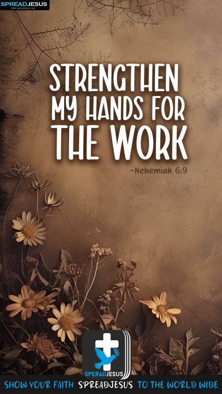 Nehemiah 6:9 Daily bible quote wallpaper for whatsapp status Download “Strengthen my hands for the work ” from Nehemiah 6:9 as a Bible quote wallpaper and daily Christian status for strength and faith. Daily Bible quote status | Christian WhatsApp status | Download HD Wallpapers Free