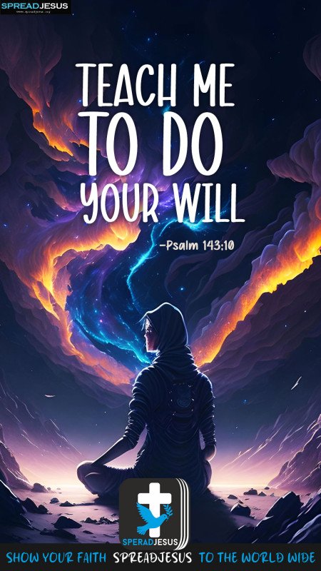 Psalm 143:10 Daily bible quote wallpaper for whatsapp status Download “Teach me to do Your will ” from Psalm 143:10 as a Bible quote wallpaper and daily Christian status for strength and faith. Daily Bible quote status | Christian WhatsApp status | Download HD Wallpapers Free