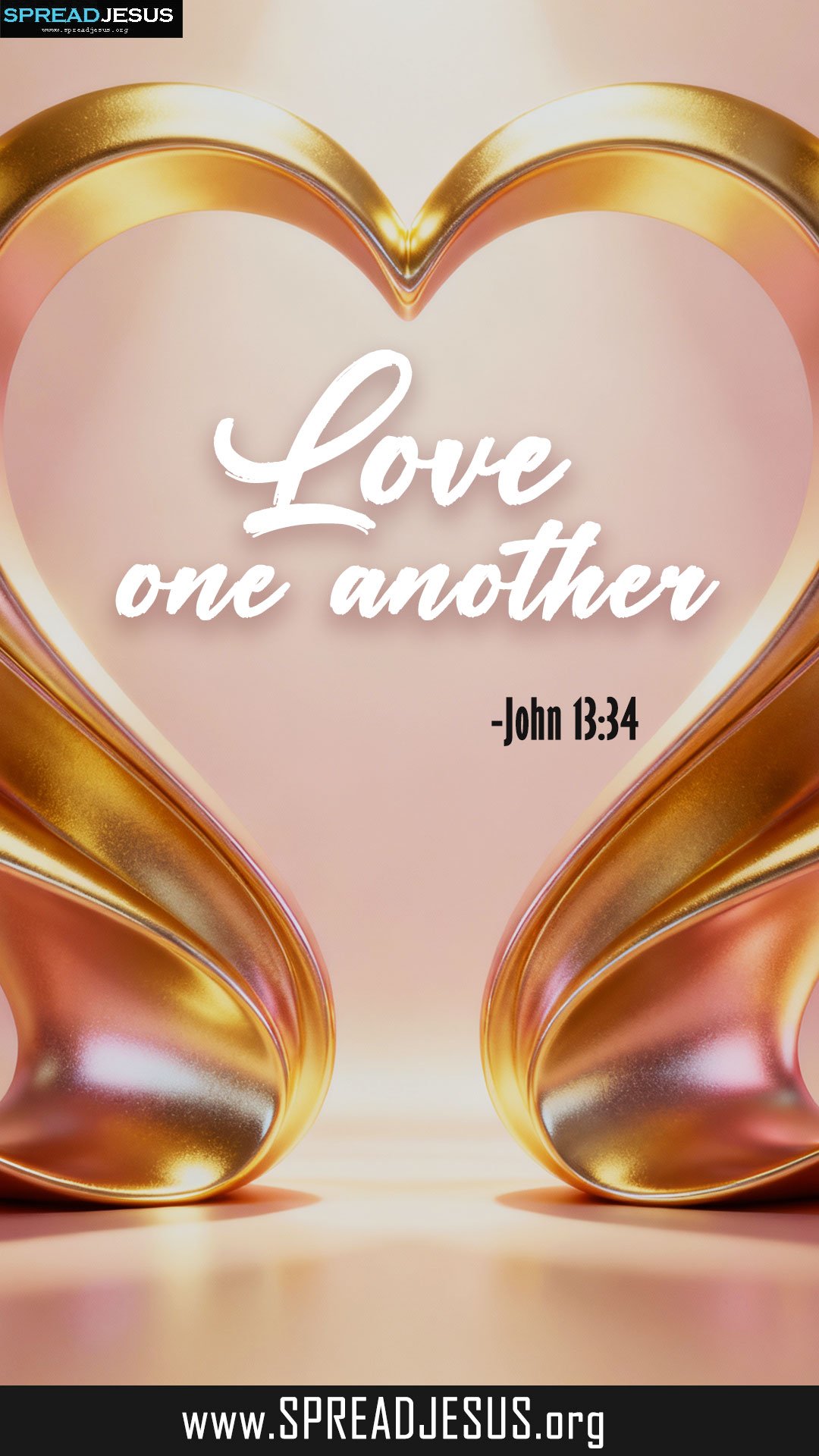 Inspiring Christian wallpaper with Jesus’ command “Love one another” from John 13:34 in HD mobile format.