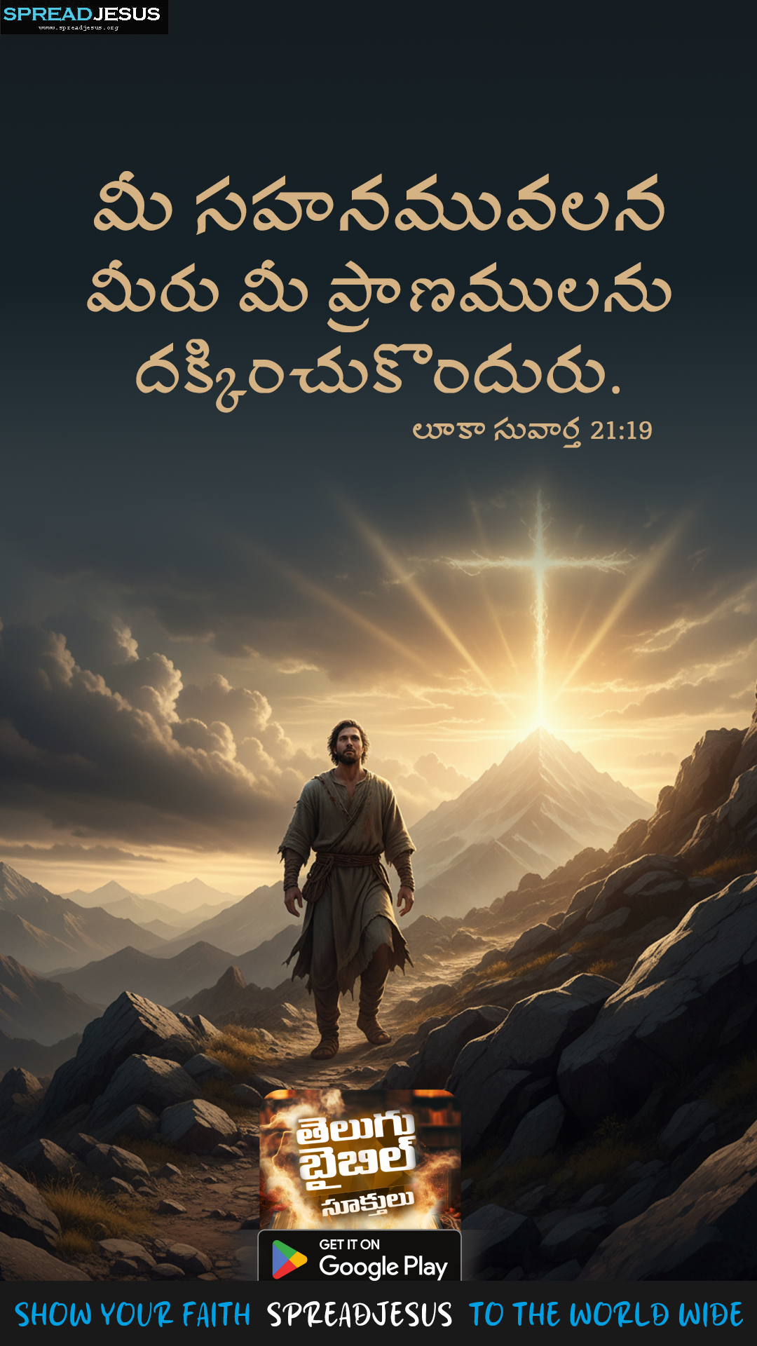 Daily Telugu Bible Verse Wallpapers Start your day with"Luke 21:19 " a Powerful Telugu Bible verse. Free mobile wallpapers updated daily.