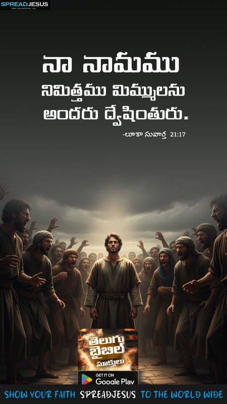 Daily Telugu Bible Verse Wallpapers  Start your day with"Luke 21:17 " a Powerful Telugu Bible verse. Free mobile wallpapers updated daily.