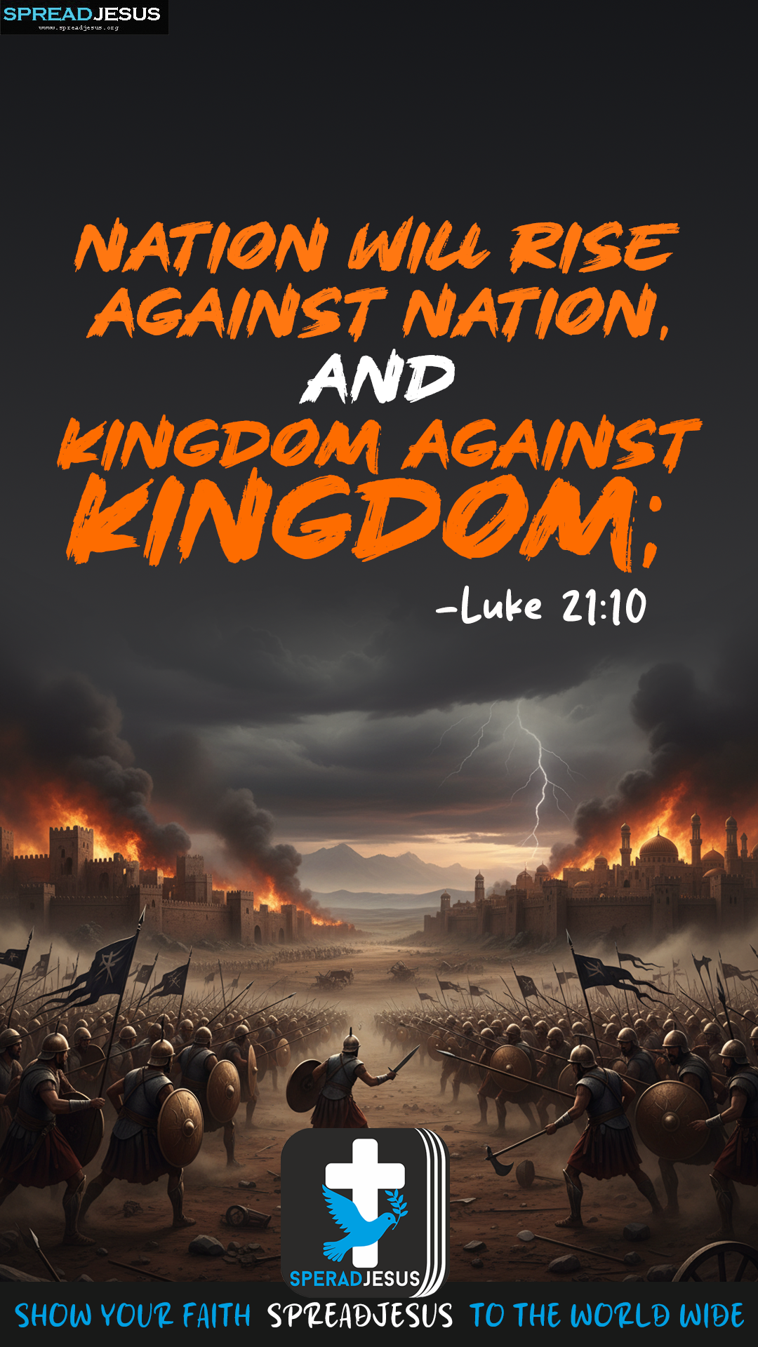 Luke 21:10 kingdom against kingdom..Free Bible Verse Wallpaper for Mobile