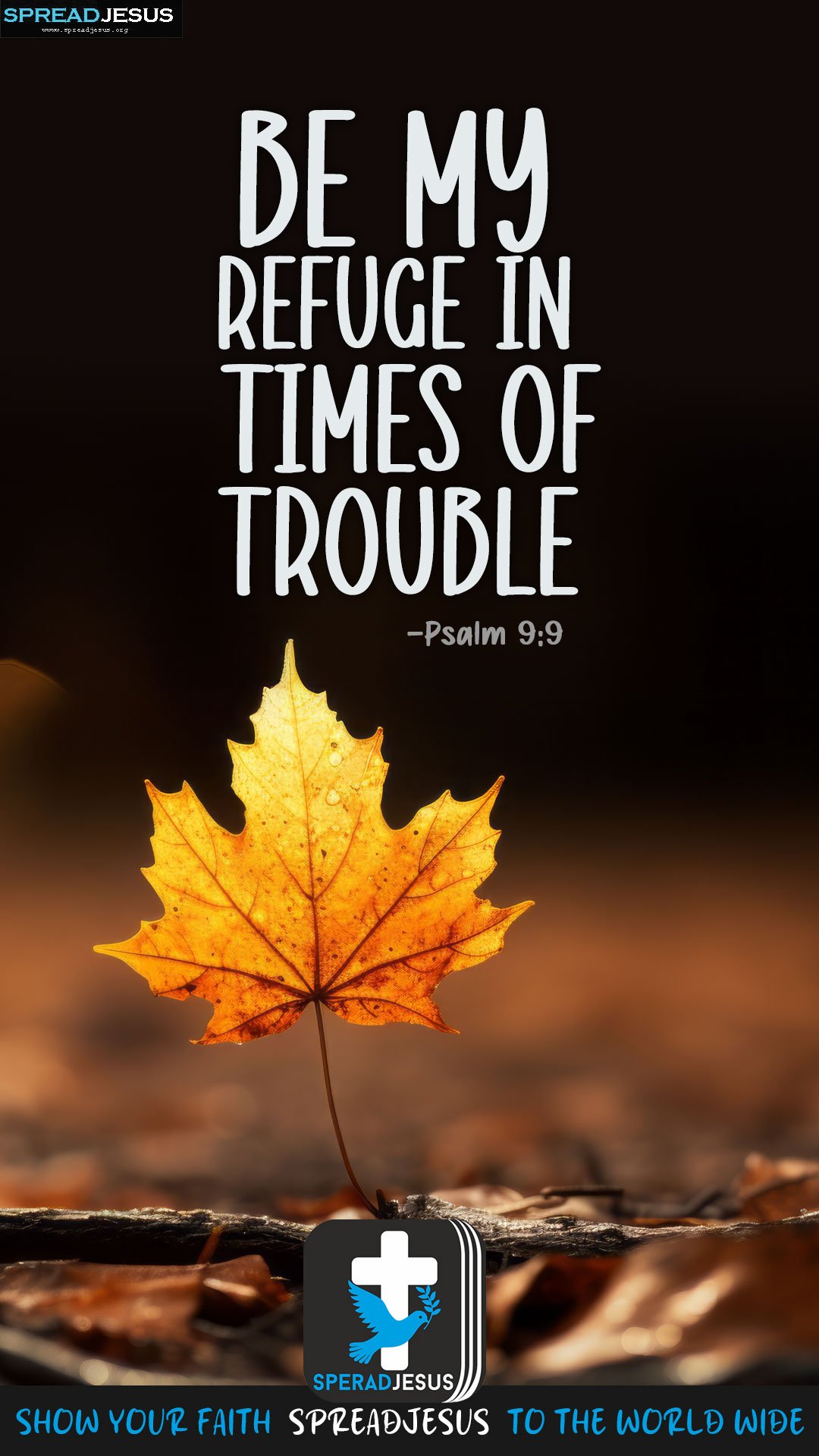 Psalm 9:9 Daily bible quote wallpaper for whatsapp Download “Be my refuge in times of trouble” from Psalm 9:9 as a Bible quote wallpaper and daily Christian status for strength and faith.