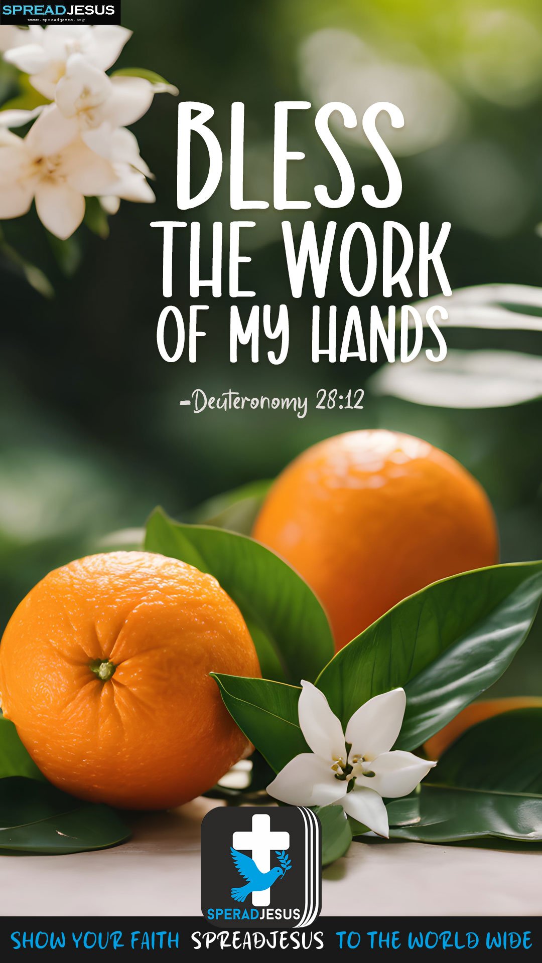Deuteronomy 28:12 Daily bible quote wallpaper for whatsapp Download “Bless the work of my hands” from Deuteronomy 28:12 as a Bible quote wallpaper and daily Christian status for strength and faith.