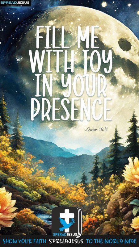 Psalm 16:11 Daily bible quote wallpaper for whatsapp Download “Fill me with joy in Your presence” from Psalm 16:11 as a Bible quote wallpaper and daily Christian status for strength and faith. Daily Bible quote status | Christian WhatsApp status | Download HD Wallpapers Free