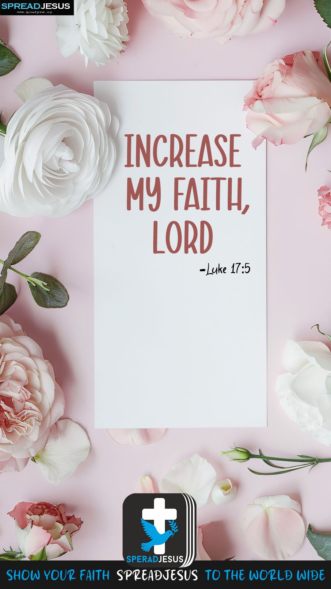 Luke 17:5 Daily bible quote wallpaper for whatsapp status Download “Increase my faith, Lord” from Luke 17:5 as a Bible quote wallpaper and daily Christian status for strength and faith. Daily Bible quote status | Christian WhatsApp status | Download HD Wallpapers Free