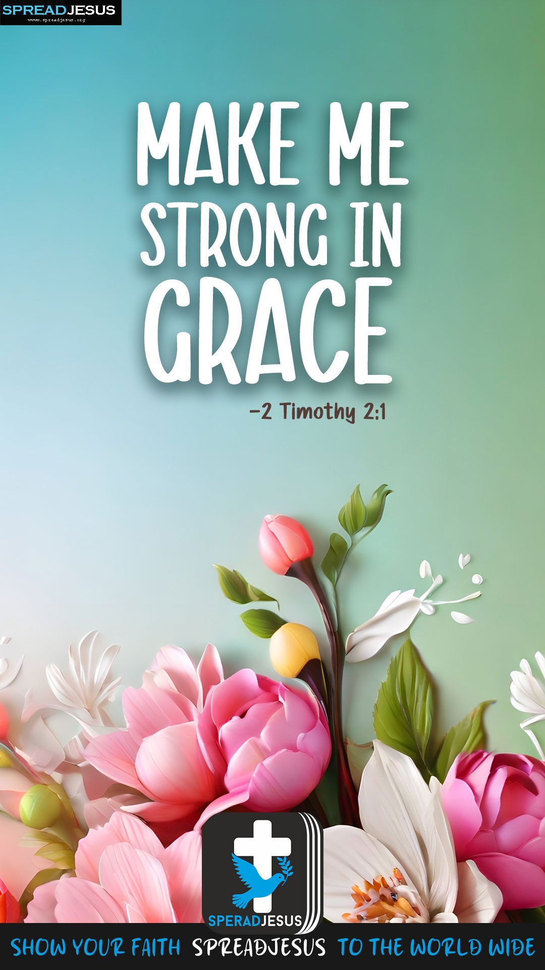 2 Timothy 2:1 Daily bible quote wallpaper for whatsapp status Download “Make me strong in grace ” from 2 Timothy 2:1 as a Bible quote wallpaper and daily Christian status for strength and faith. Daily Bible quote status | Christian WhatsApp status | Download HD Wallpapers Free